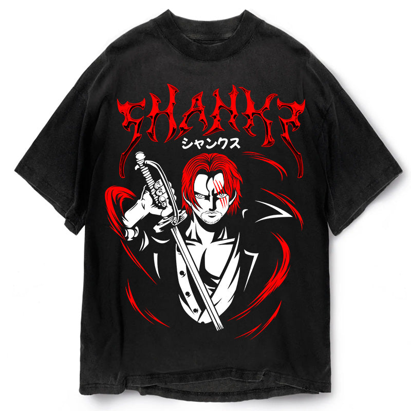 Immerse yourself in the world of adventure and camaraderie with our striking Shanks T-shirt. The design showcases Shanks, one of the most revered characters in the One Piece universe, in vivid red hues that perfectly capture his commanding presence. Whether you're a fan of his iconic straw hat or his devil-may-care grin, this T-shirt brings Shanks to life like never before.n.